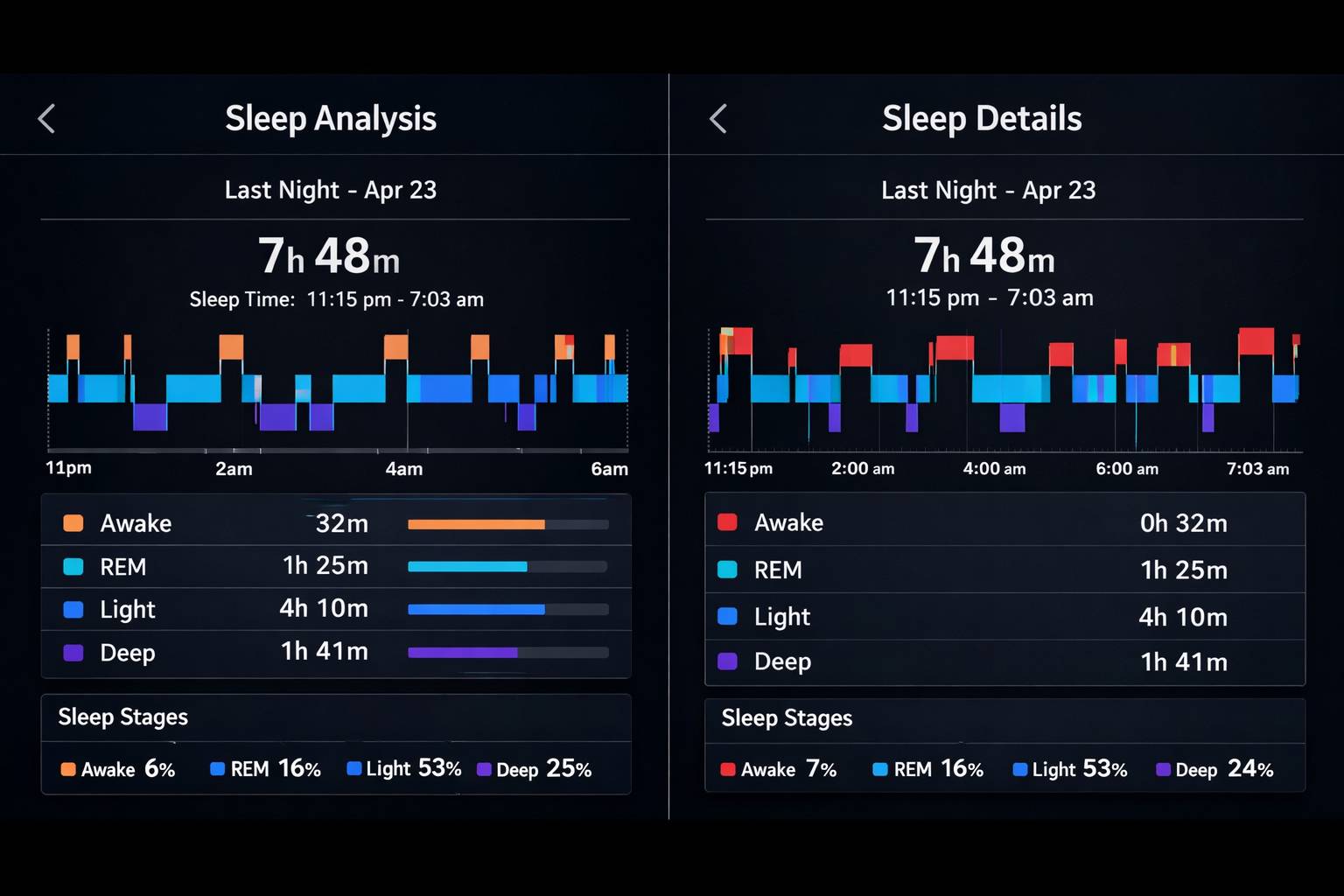 Whoop punya sleep coach yang kasih tahu berapa jam sleep yang kamu butuhin berdasarkan strain hari sebelumnya dan sleep debt. Apple Watch cuma track sleep stage (Awake, REM, Core, Deep) dan nggak kasih saran personal.